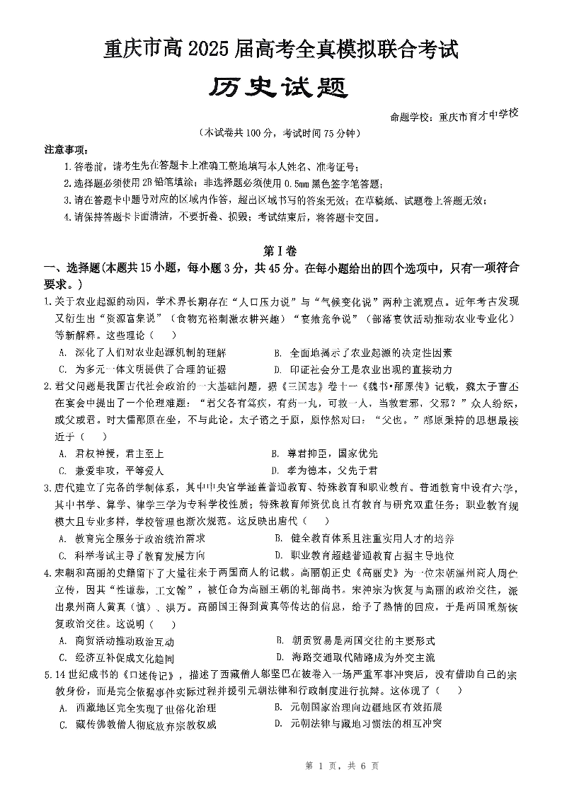 重庆育才中学全真模拟 历史.pdf