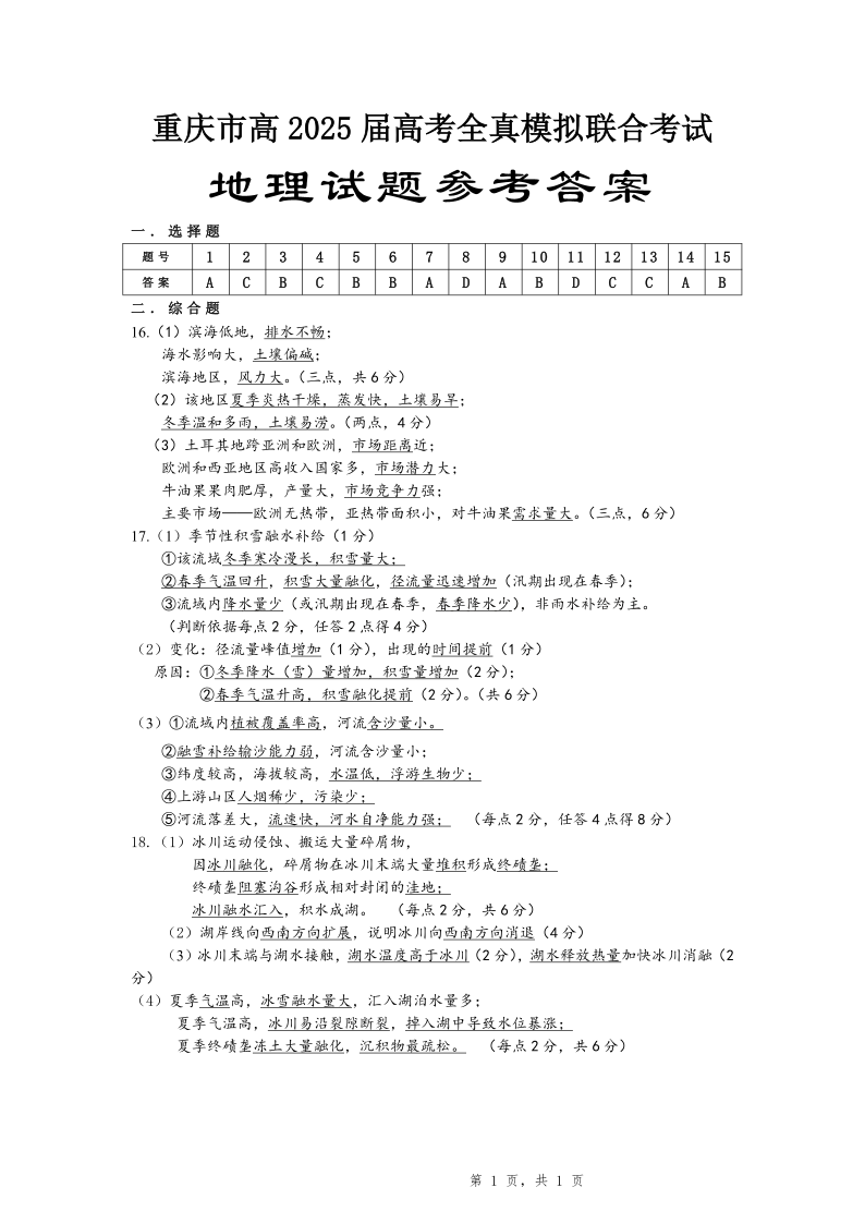 重庆育才中学全真模拟 地理答案.pdf
