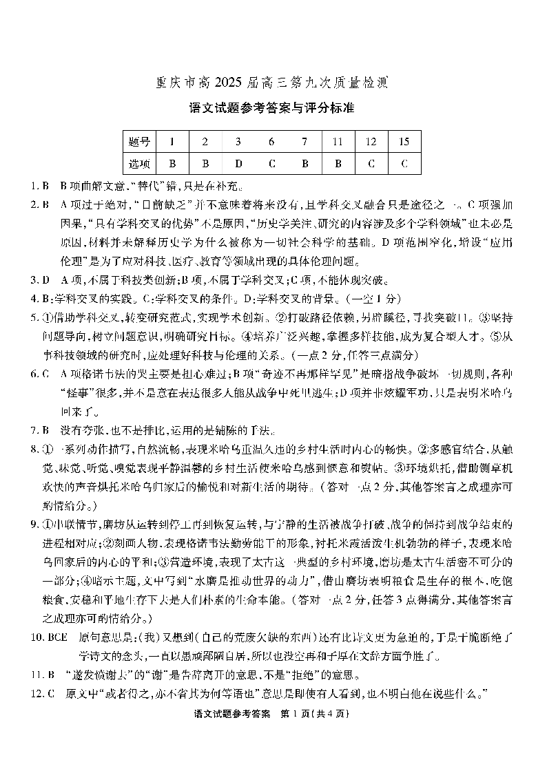 南开第九次联考 语文答案.pdf