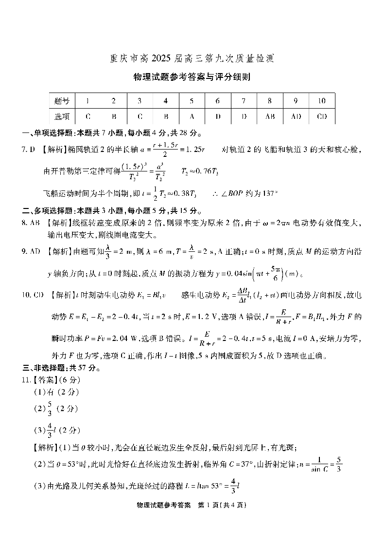 南开第九次联考 物理答案.pdf