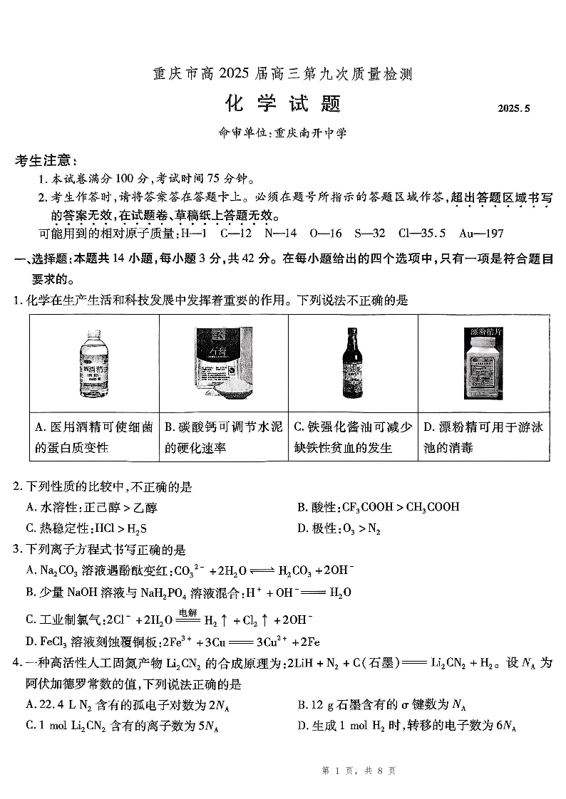 南开第九次联考 化学.pdf