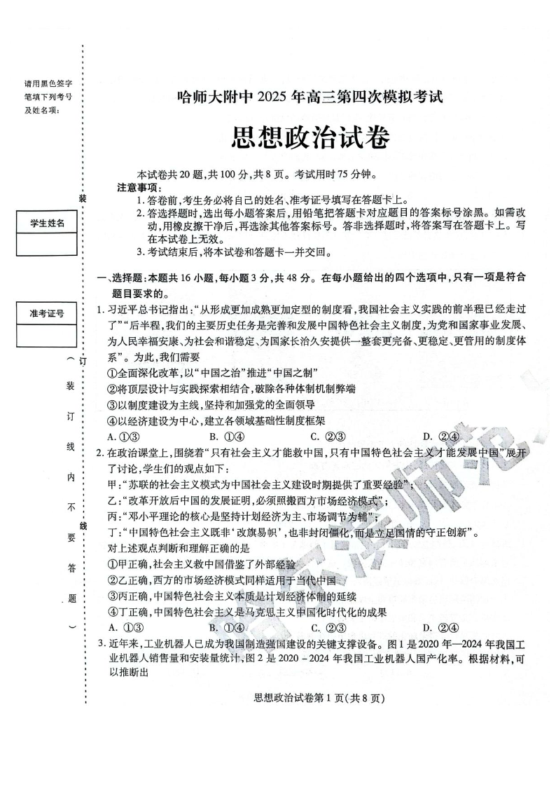 哈师大附中2025年高三第四次模拟考试 政治(含答案).pdf