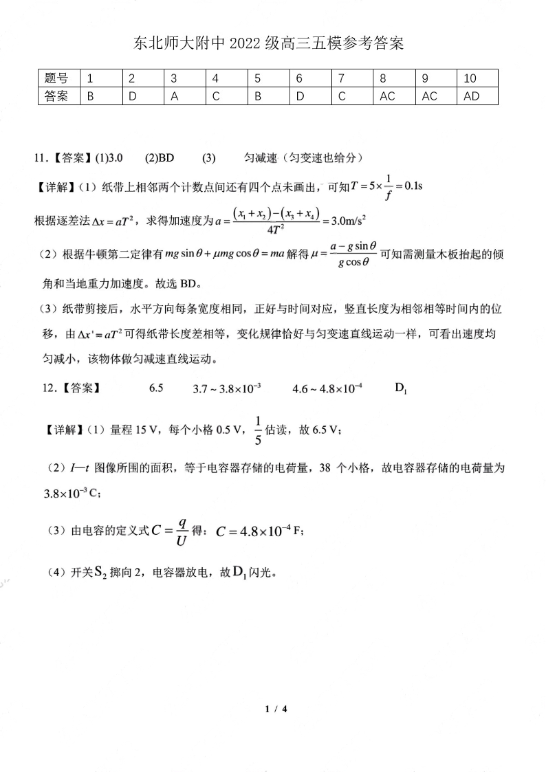 东北师大附中2025届高三年级第五次模拟考试 物理答案.pdf