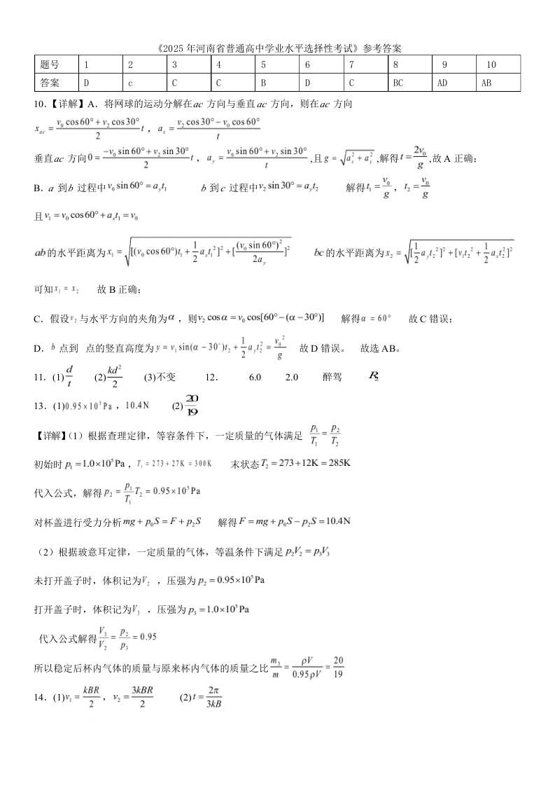 河南省实验中学2025届高三下学期全真模拟 物理答案.docx
