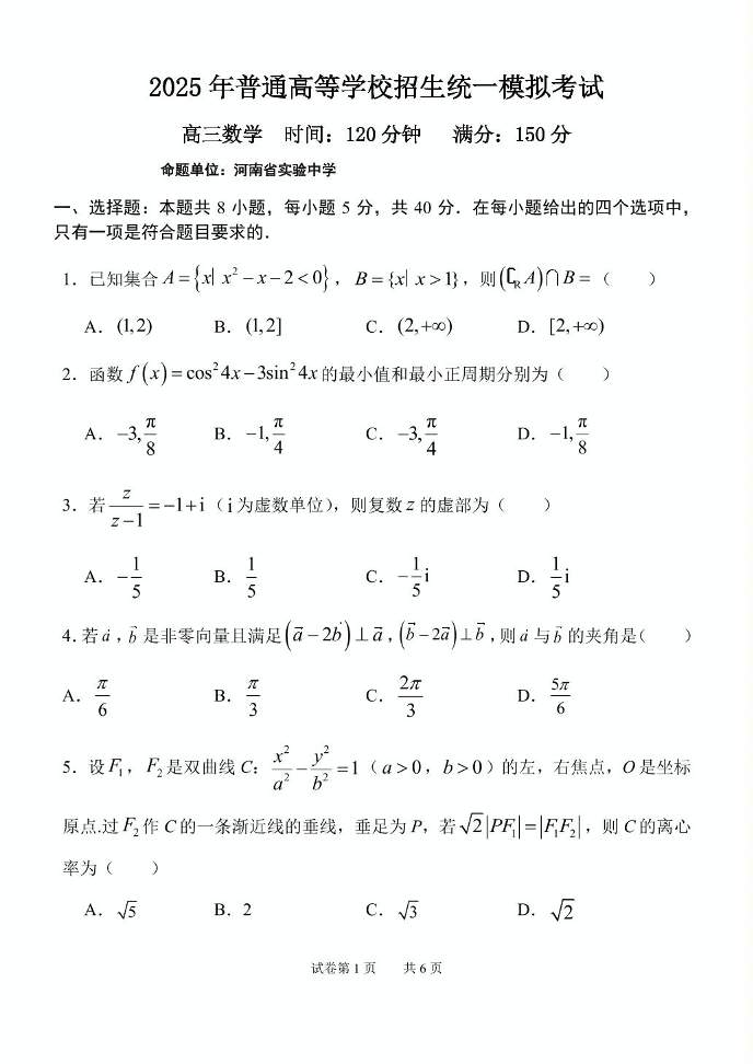 河南省实验中学2025届高三下学期全真模拟 数学.pdf