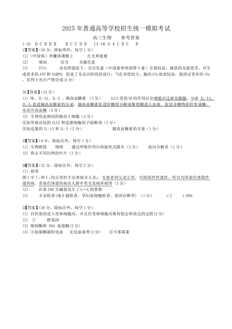 河南省实验中学2025届高三下学期全真模拟 生物答案.docx