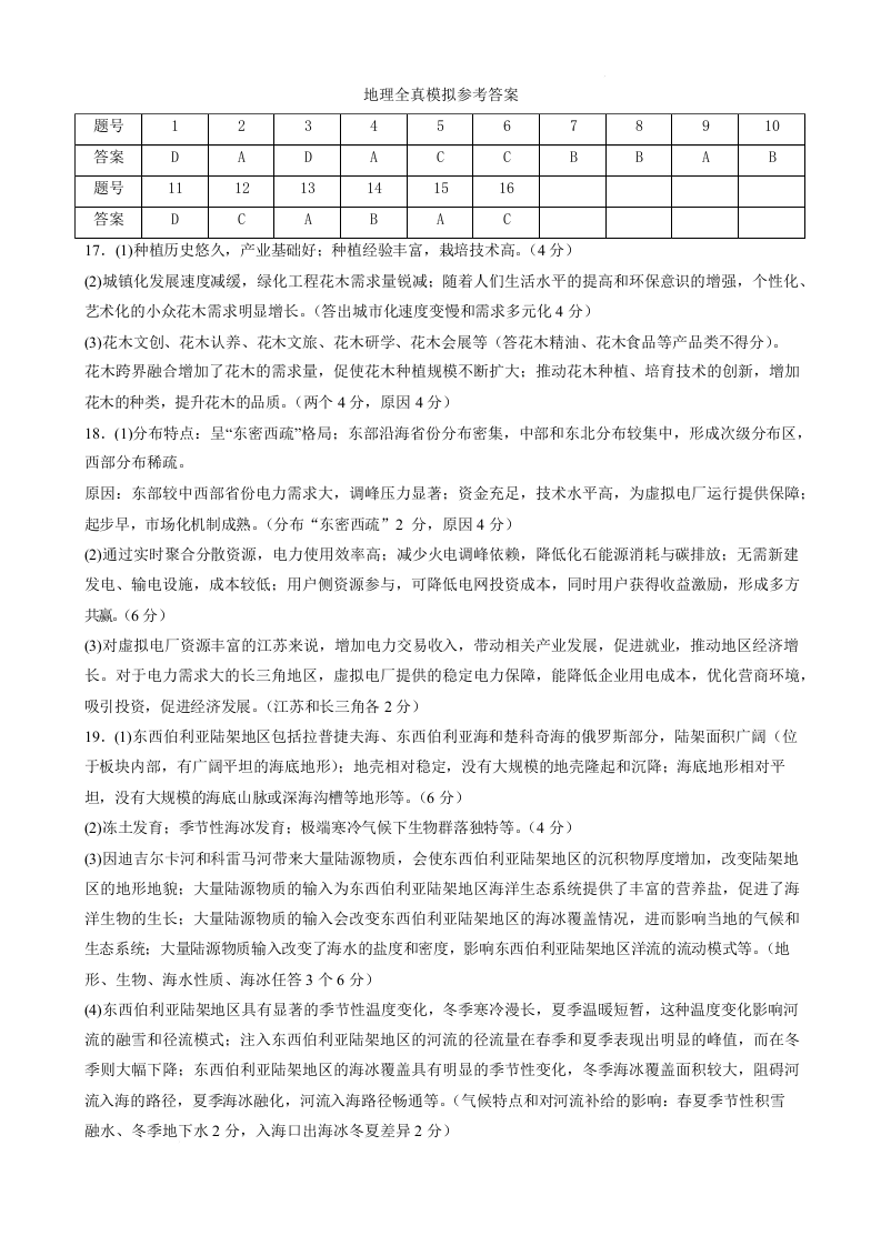 河南省实验中学2025届高三下学期全真模拟 地理答案.docx