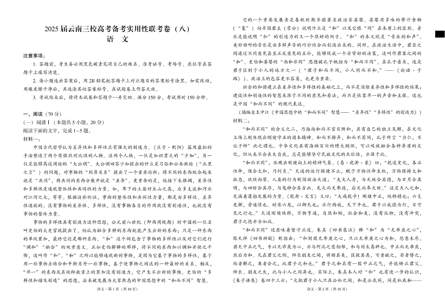 云南省三校2025届高三下学期高考备考实用性联考(八)语文试卷(含解析).pdf