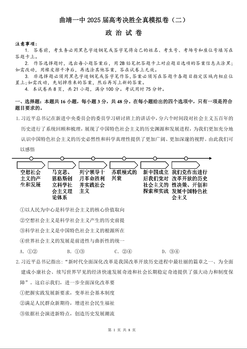 曲靖一中2025届高考决胜全真模拟卷(二)政治.doc