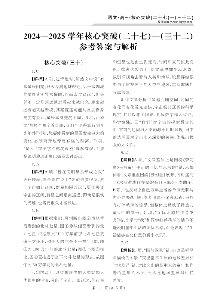 曲靖一中2025届高考决胜全真模拟卷(二)语文答案.pdf