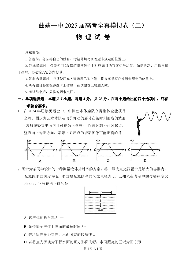 曲靖一中2025届高考决胜全真模拟卷(二)物理.pdf