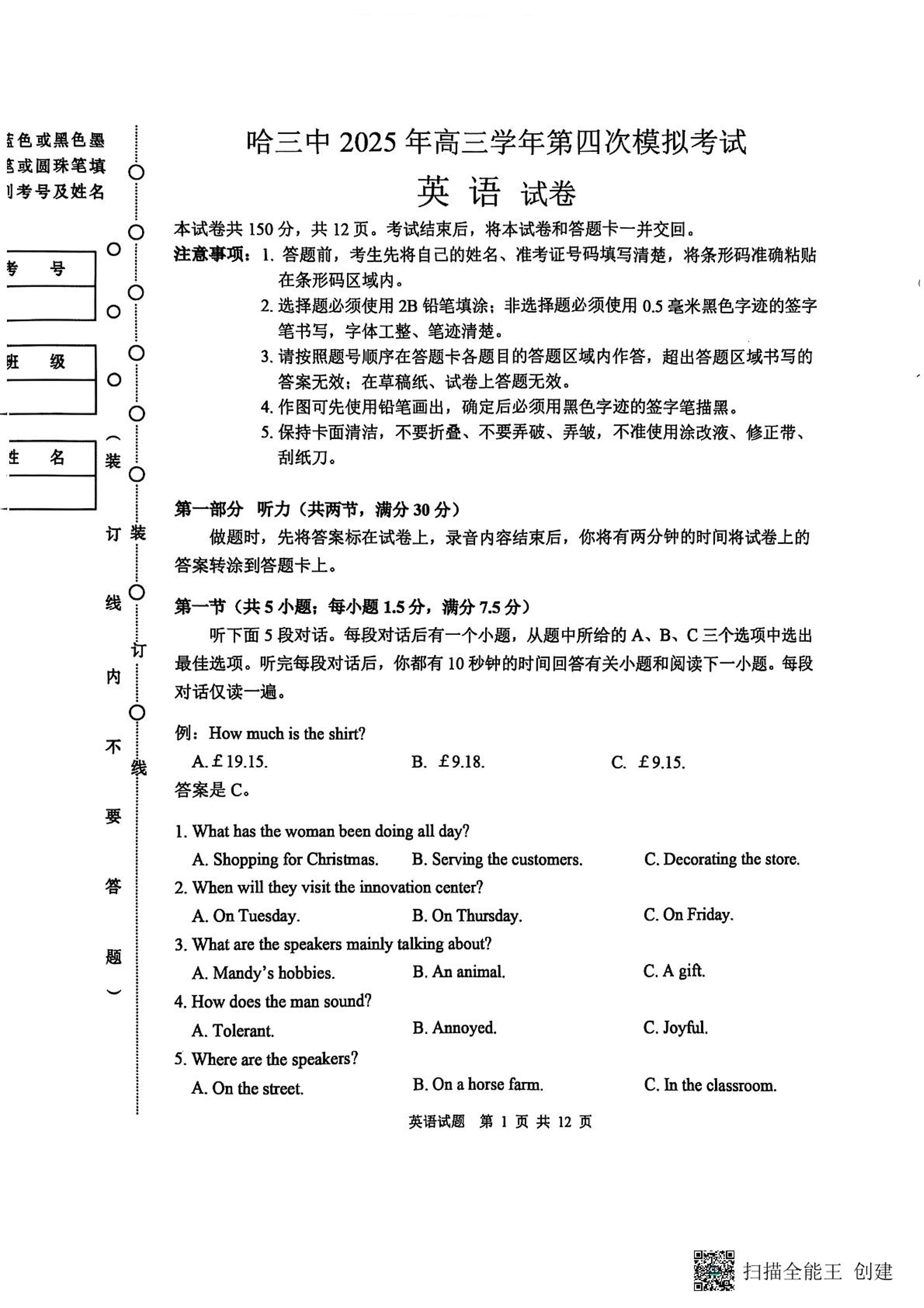 黑龙江省哈尔滨市第三中学校2025届高三第四次模拟考试 英语.pdf