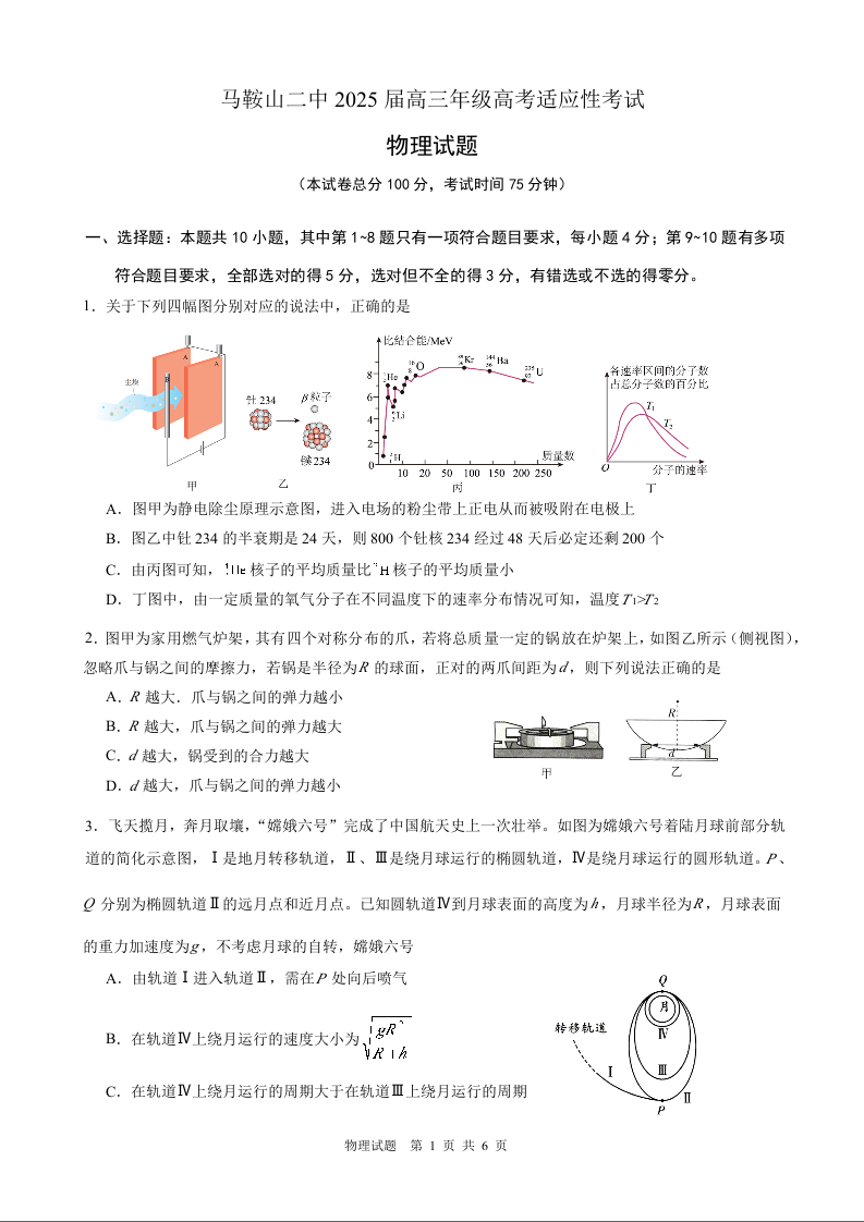 马鞍山二中2025届高三年级高考适应性考试 物理.docx
