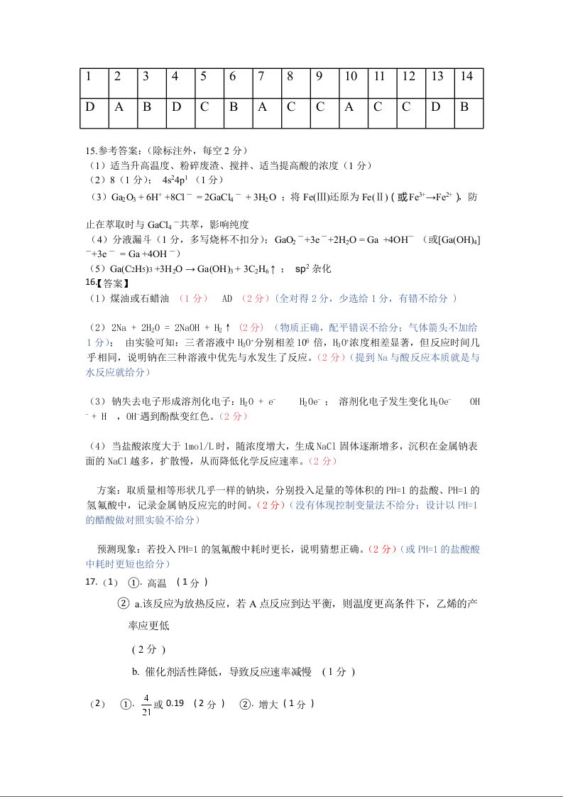 马鞍山二中2025届高三年级高考适应性考试 化学答案.docx