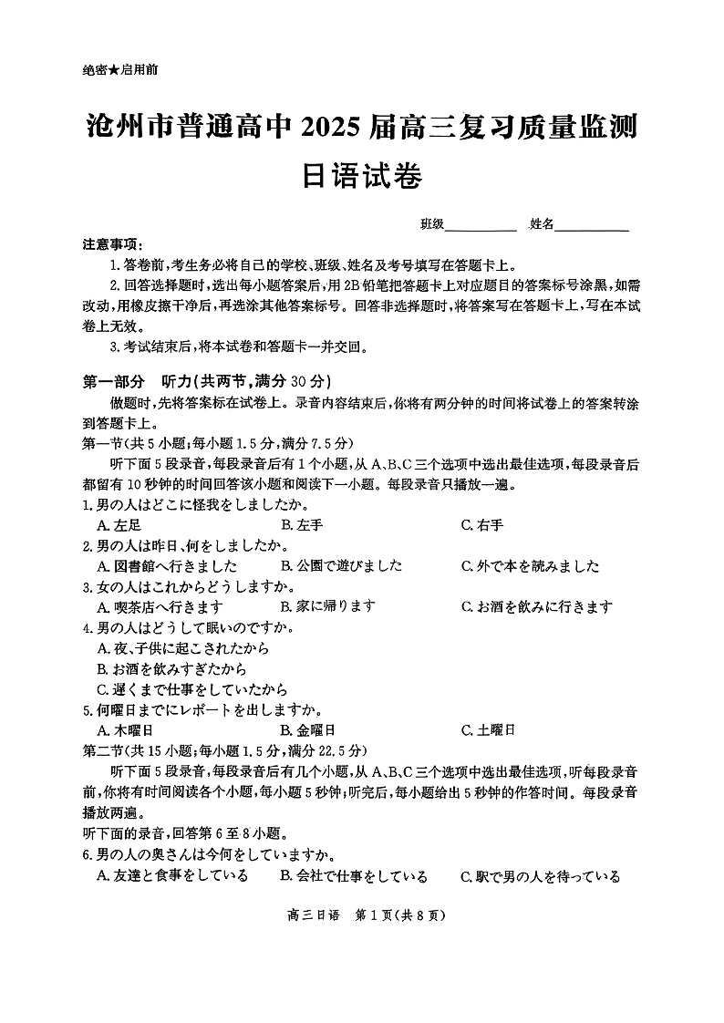 安徽省合肥一六八中学2025届高三最后一卷 日语.pdf