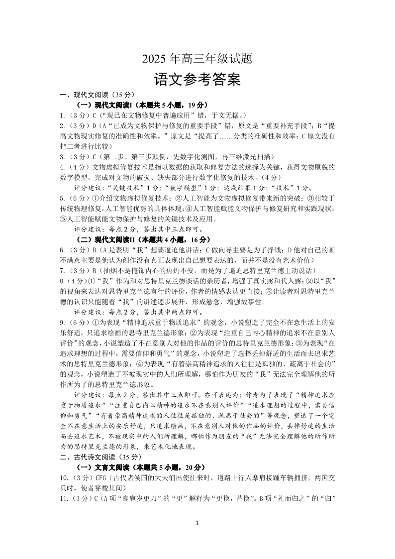 江苏省徐州市2025届高三下学期5月考前打靶 语文答案.pdf