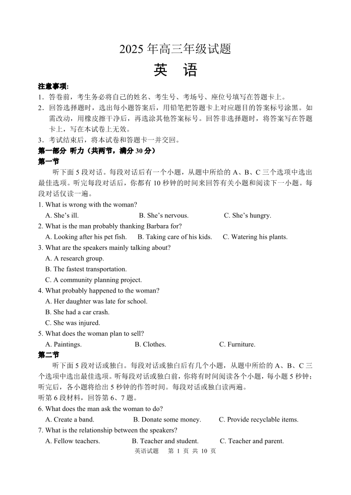 江苏省徐州市2025届高三下学期5月考前打靶 英语.pdf