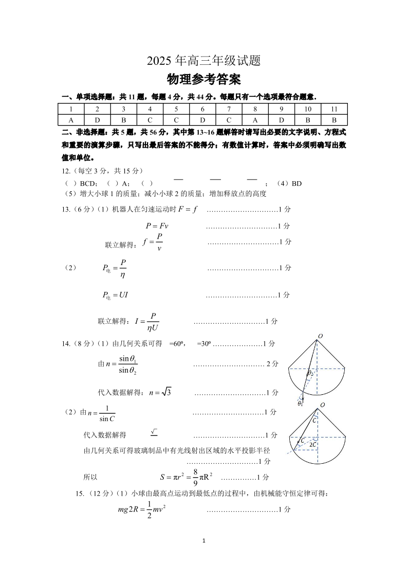 江苏省徐州市2025届高三下学期5月考前打靶 物理答案.pdf