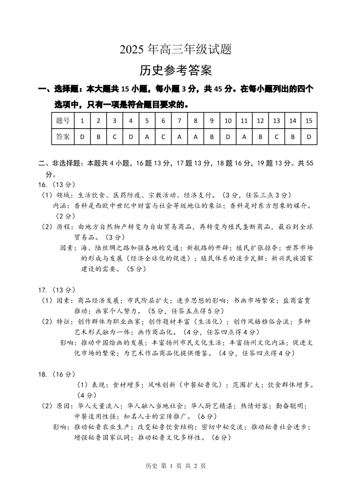 江苏省徐州市2025届高三下学期5月考前打靶 历史答案.pdf