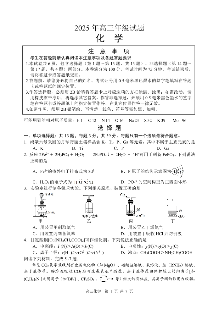 江苏省徐州市2025届高三下学期5月考前打靶 化学.pdf