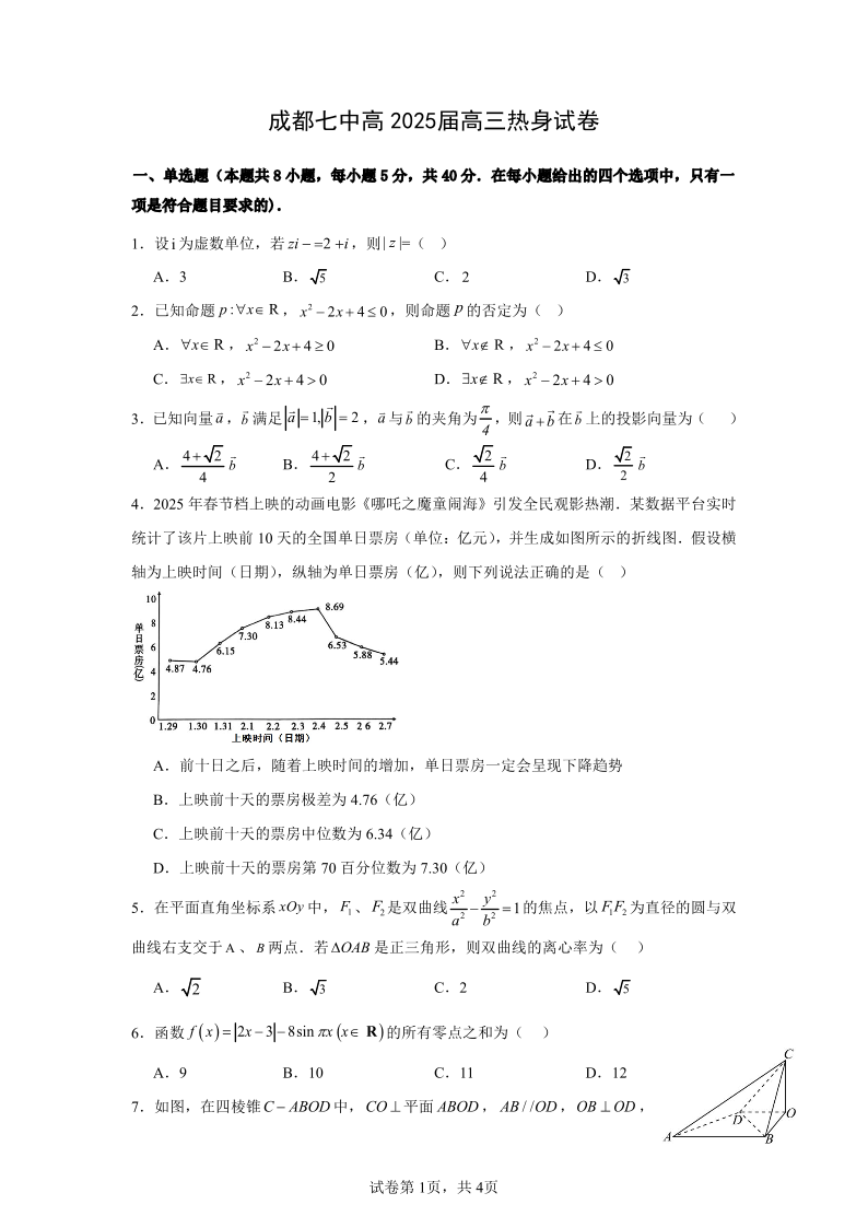 成都市第七中学2024~2025学年度下期高2025届高考热身考试 数学.pdf