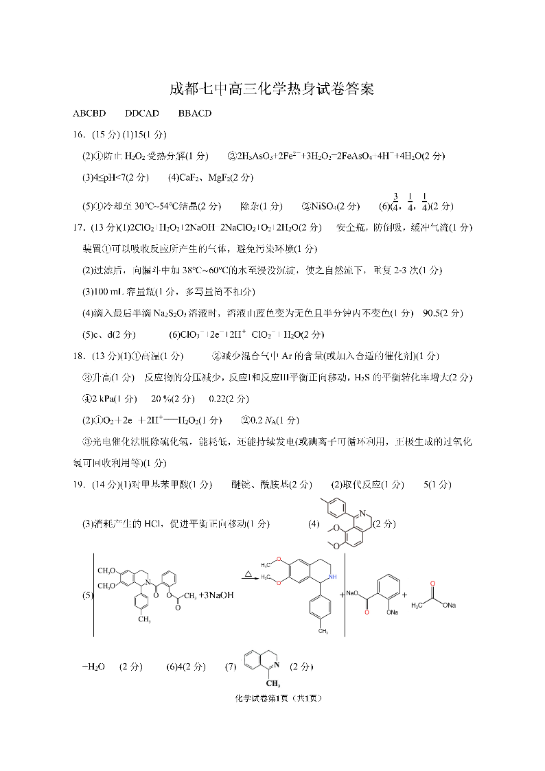 成都市第七中学2024~2025学年度下期高2025届高考热身考试 化学答案.pdf