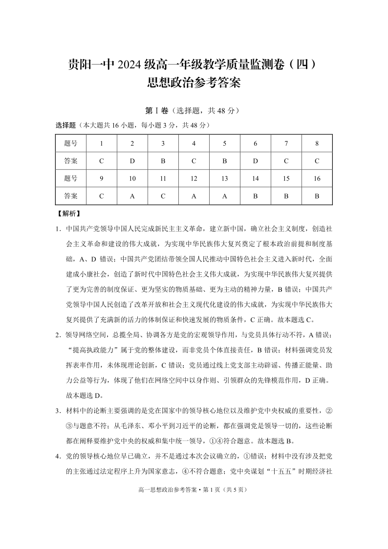 贵阳一中2024级高一年级教学质量监测卷(四)政治-答案.pdf