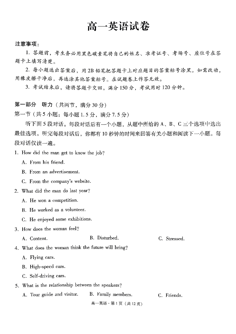 贵阳一中2024级高一年级教学质量监测卷(四)英语.pdf