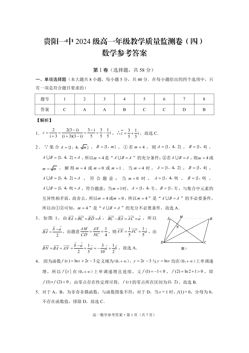 贵阳一中2024级高一年级教学质量监测卷(四)数学-答案.pdf