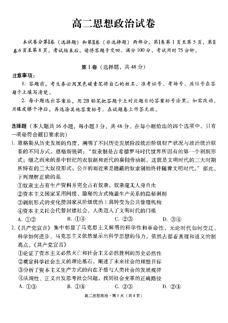 贵阳一中2023级高二年级教学质量监测卷(四)政治.pdf