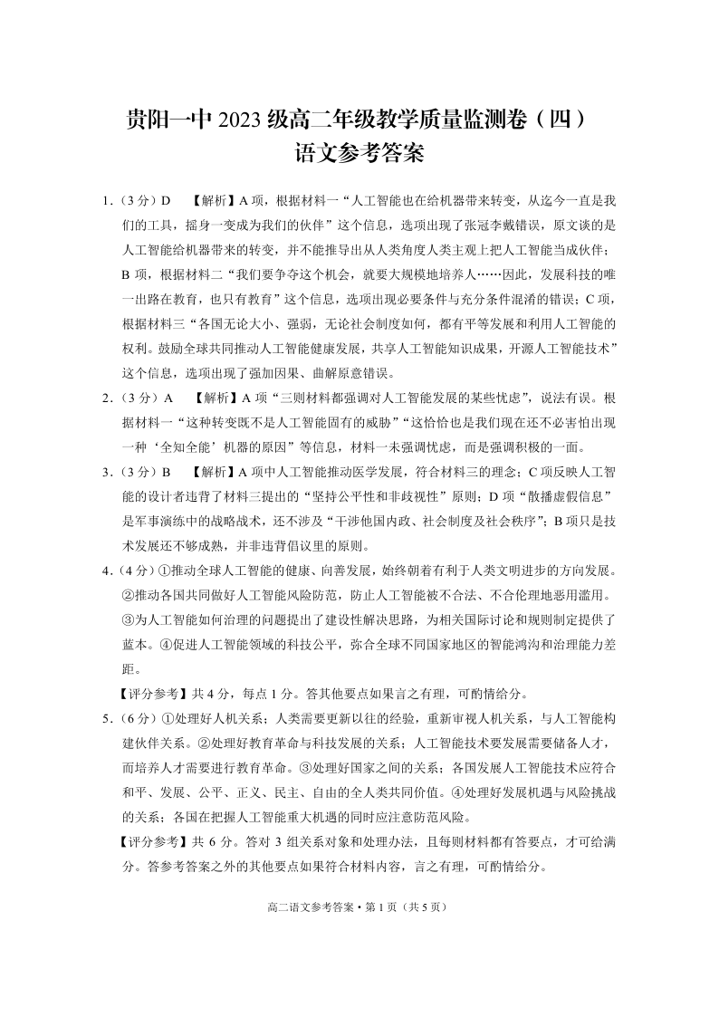 贵阳一中2023级高二年级教学质量监测卷(四)语文-答案.pdf
