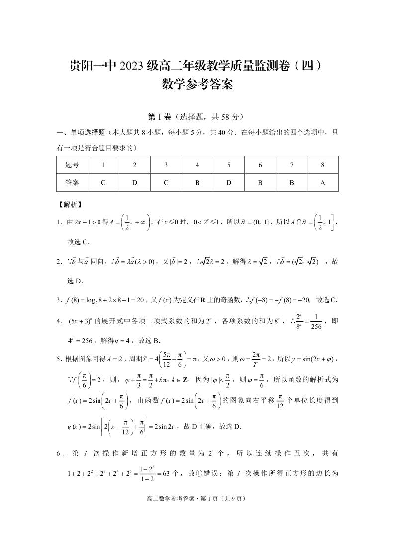 贵阳一中2023级高二年级教学质量监测卷(四)数学-答案.pdf