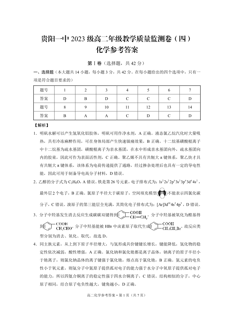 贵阳一中2023级高二年级教学质量监测卷(四)化学-答案.pdf