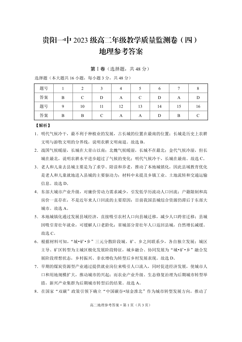 贵阳一中2023级高二年级教学质量监测卷(四)地理-答案.pdf