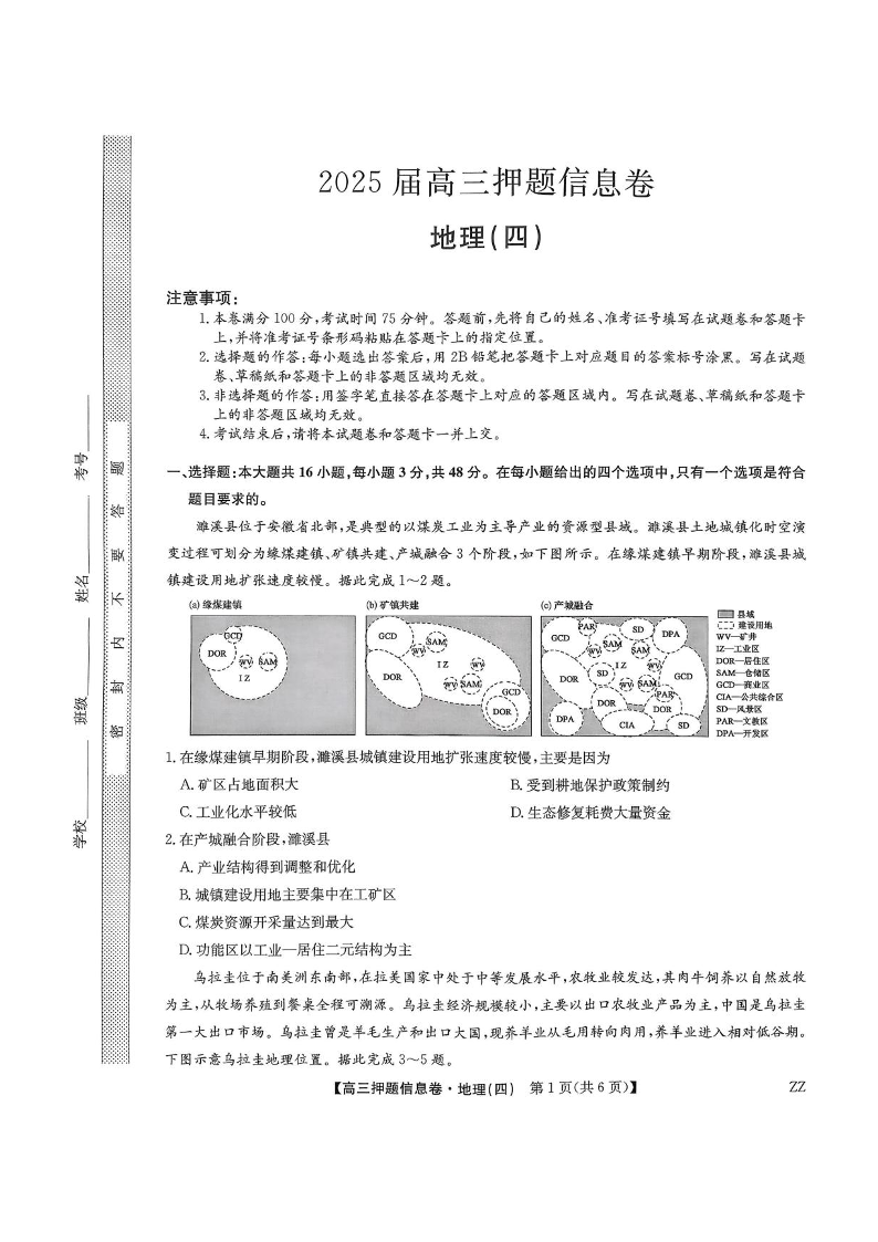 九师联盟2025届高三押题信息卷(四)地理试卷(含答案).pdf