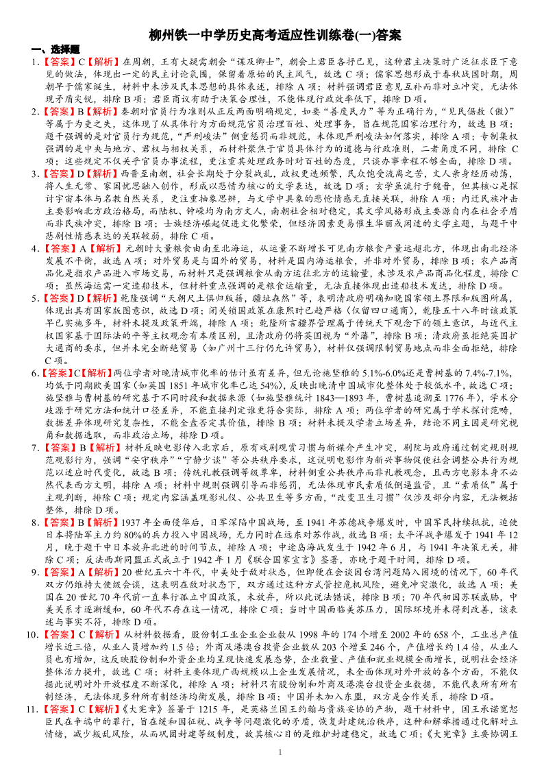 柳铁一中2025届高考适应性训练 历史答案.pdf