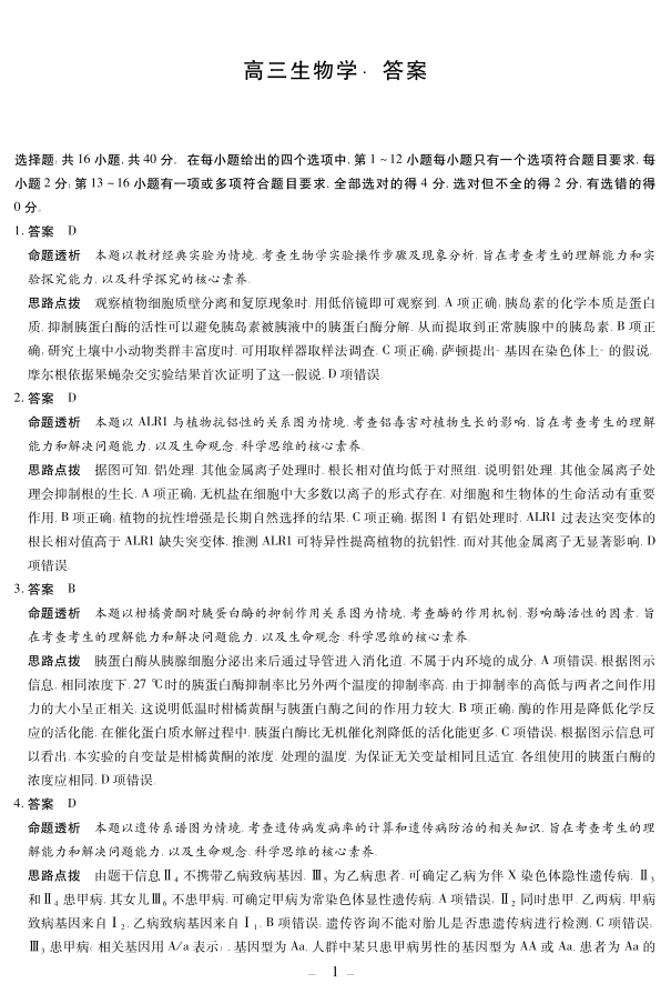 湖南省天一大联考2025届高三5月最后一卷-生物答案.pdf