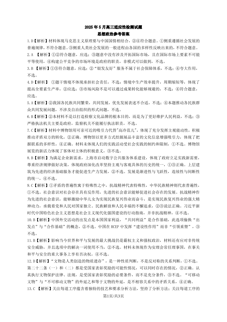 山东师范大学附属中学2025年5月高三适应性检测 政治答案.pdf