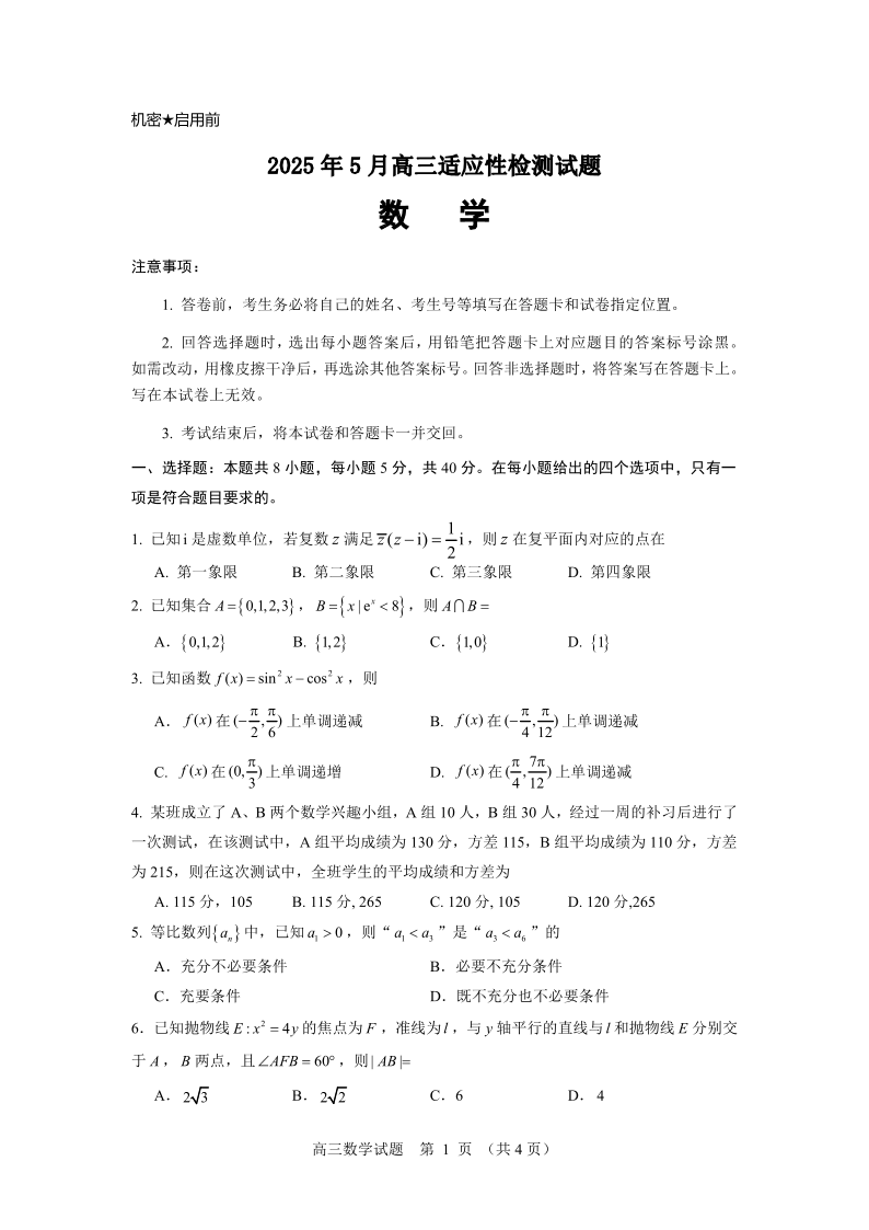 山东师范大学附属中学2025年5月高三适应性检测 数学.pdf