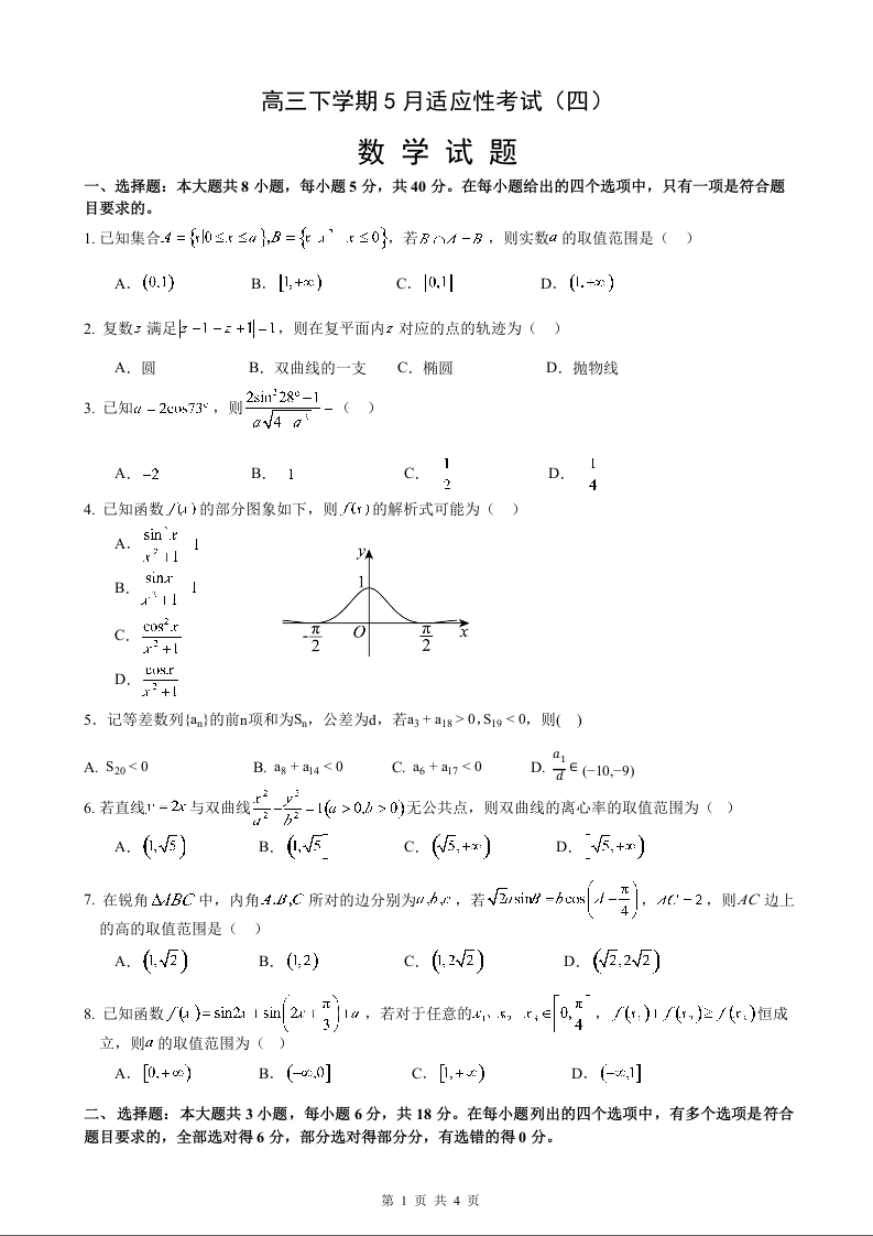 湖北省襄阳五中2025届高三下学期5月适应性考试(四)数学.docx