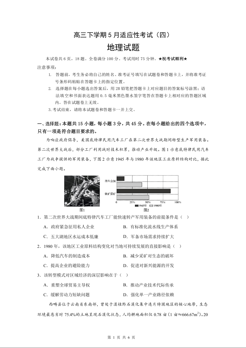 湖北省襄阳五中2025届高三下学期5月适应性考试(四)地理.docx