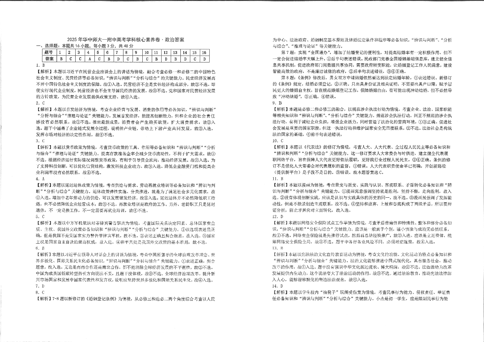 2025年华中师大一附中高考学科核心素养卷·政治答案.pdf