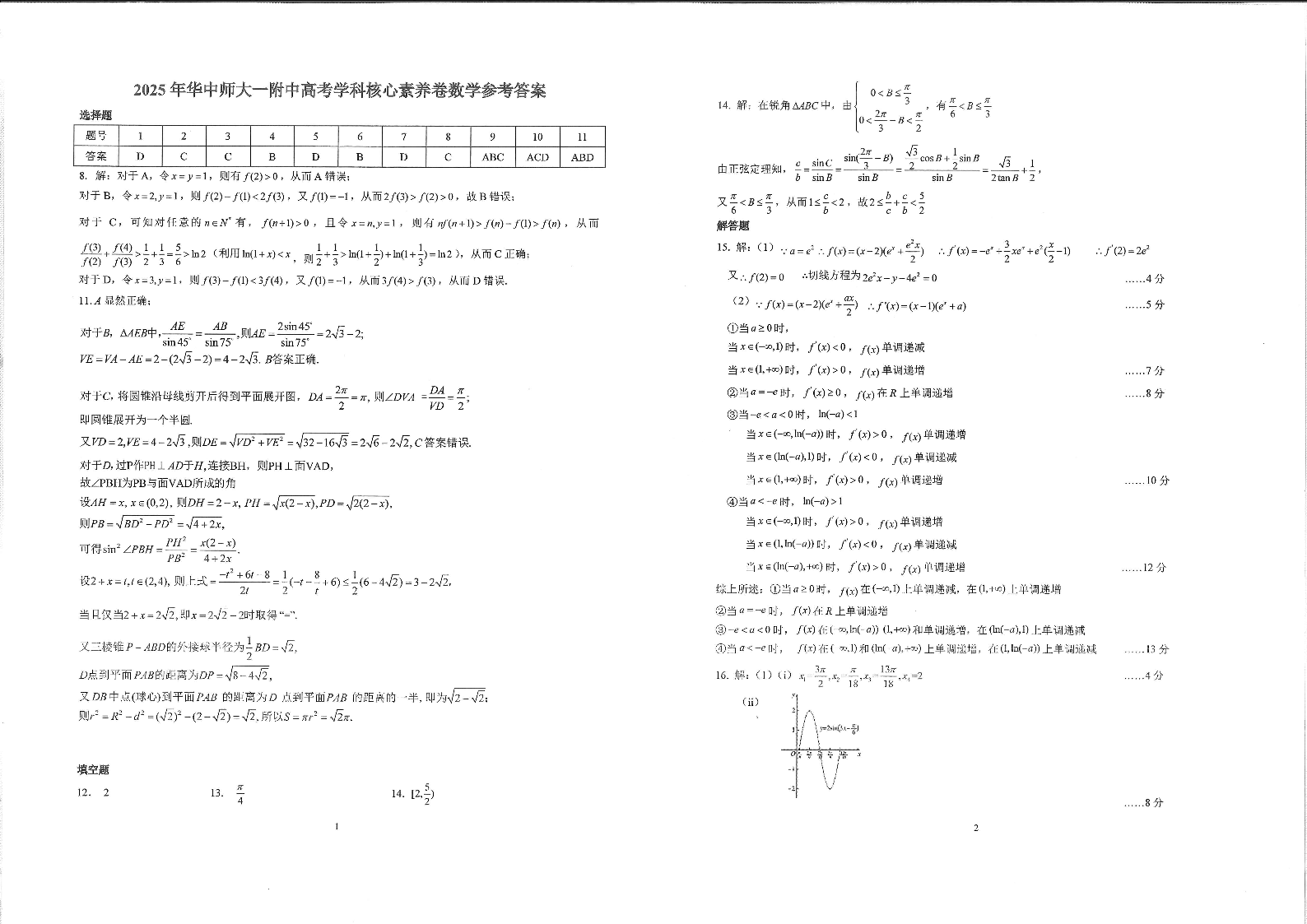 2025年华中师大一附中高考学科核心素养卷·数学答案.pdf