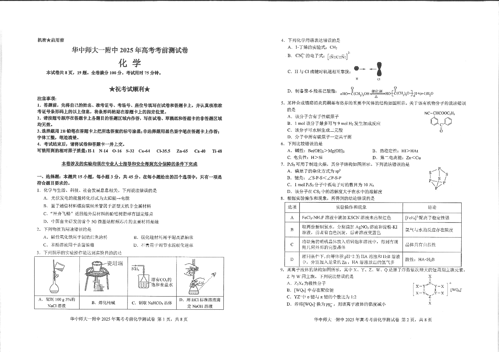 2025年华中师大一附中高考学科核心素养卷·化学.pdf