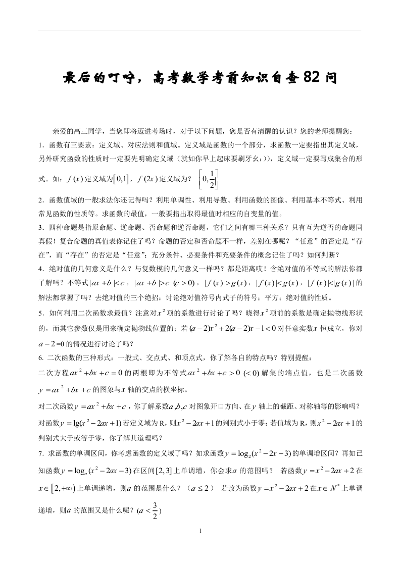 (衡水中学)考前最后的叮咛,高考数学考前知识自查82问(PDF版)(解析版).pdf