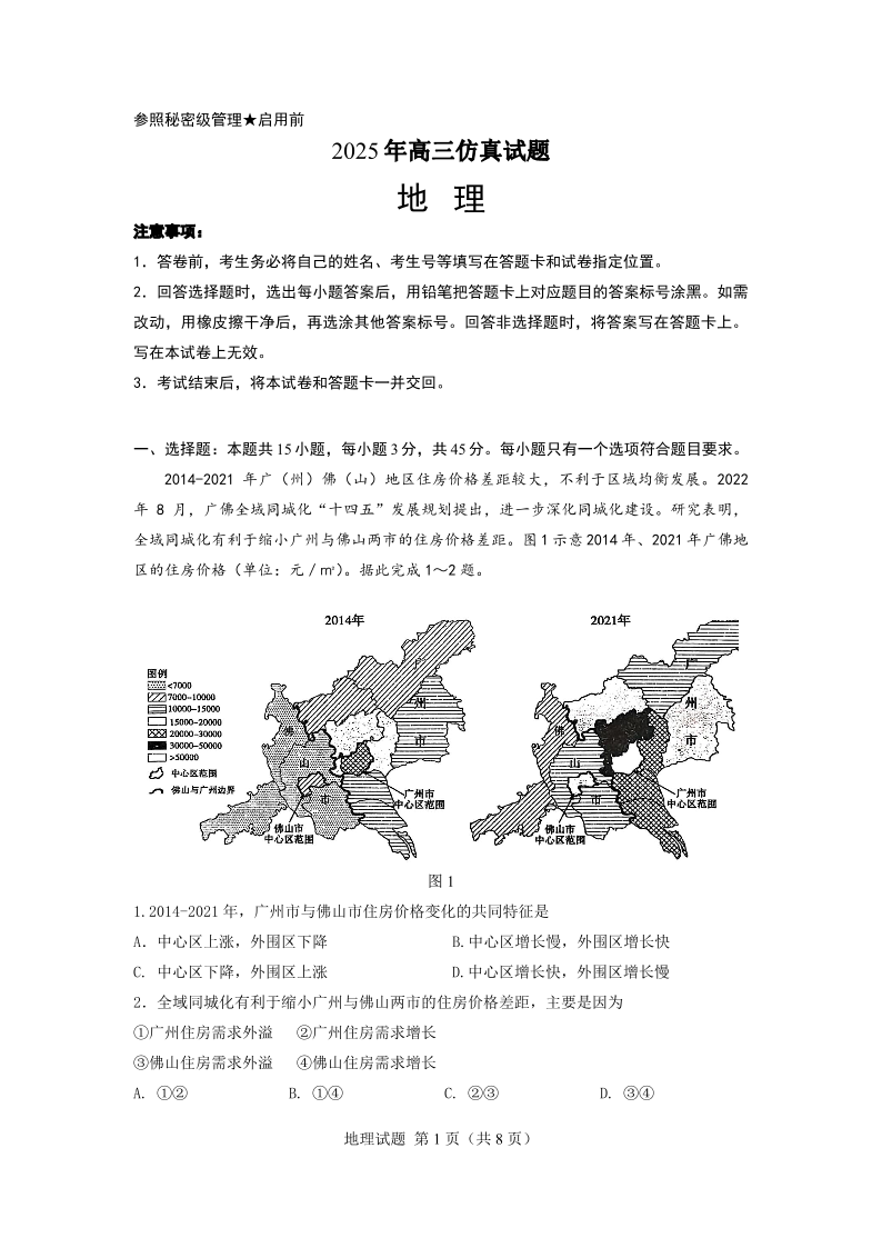 三模地理(含答案).pdf
