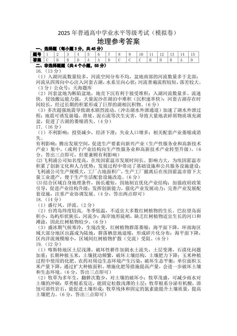招远市三模 地理答案.pdf