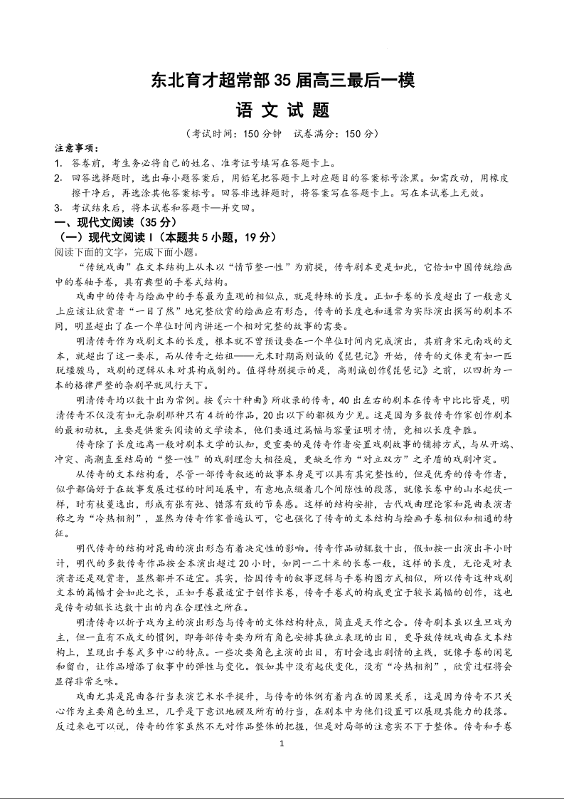东北育才超常部35届高三最后一模 语文.docx