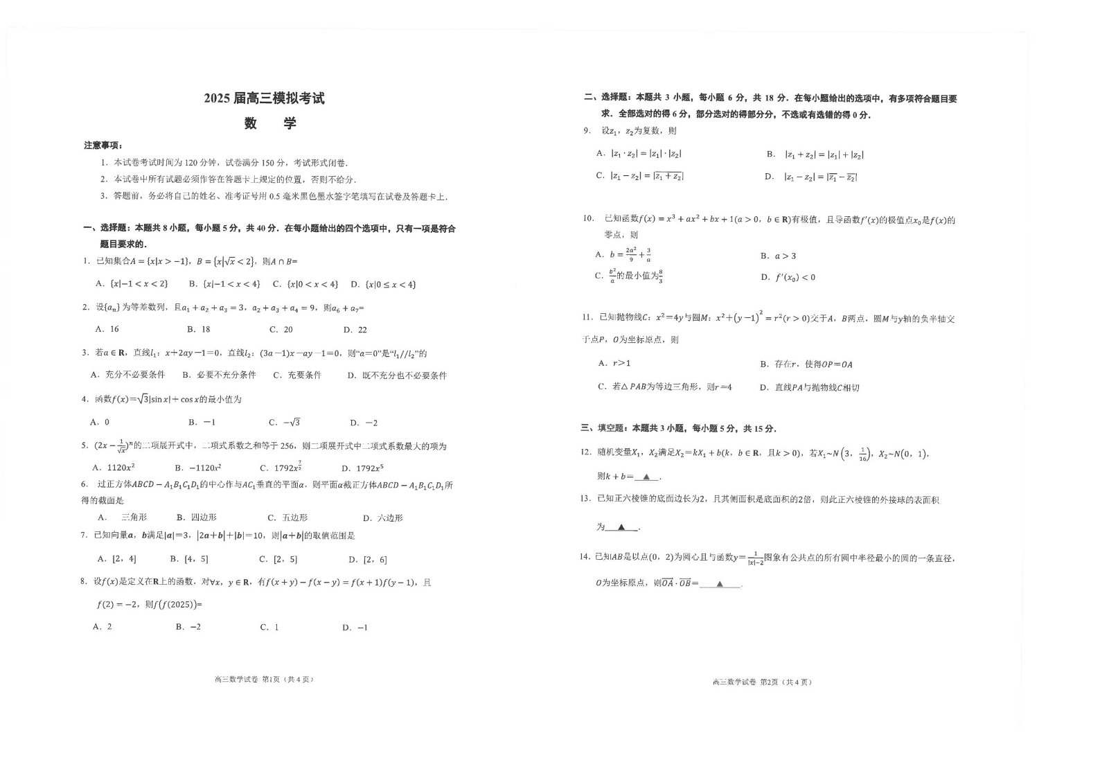 江苏省海安高级中学2025届高三第四次模拟考试 数学(含答案).pdf