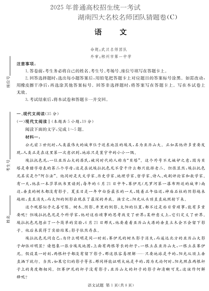 湖南省四大名校名师团队猜题卷(C)语文.pdf